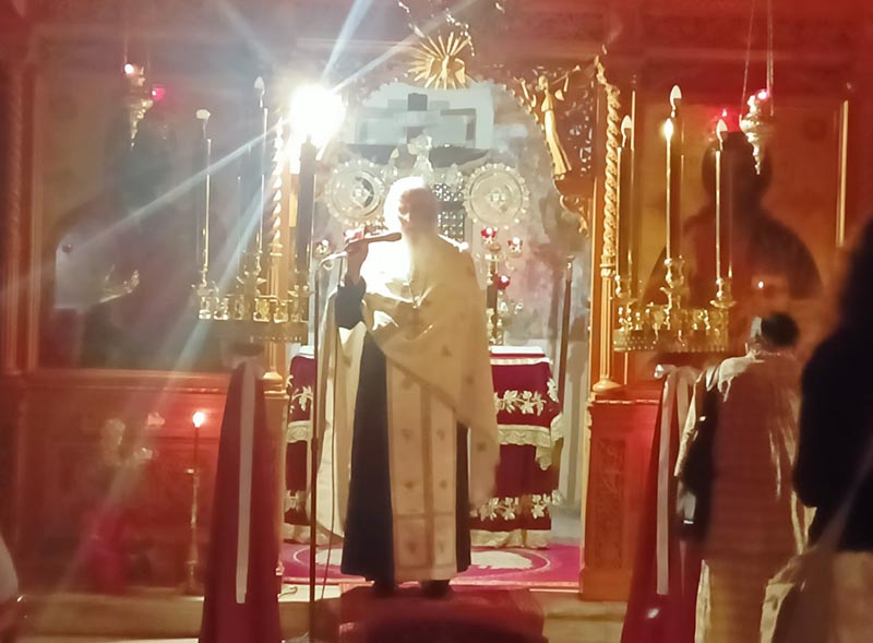 Κατανυκτική ήταν η ακολουθία μέσα στον Ιερό Ναό, φωτισμένο από τα κανδήλια που κρέμονταν μπροστά από την Ωραία Πύλη και στις Εικόνες, από τις λαμπάδες και τα κεράκια! Πραγματικά ένα ουράνιο φώς!