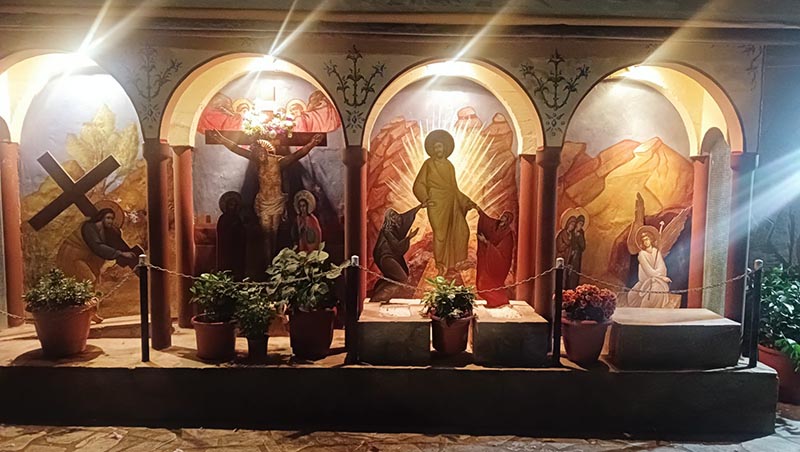 Μνημείο Ορθοδοξίας και Επίγειος Παράδεισος η Ιερά Μονή της Κοιμήσεως της Θεοτόκου στη Σκαφιδιά, με τα ολόδροσα δέντρα και φυτά, με τα μοσχομυριστά πολύχρωμα λουλούδια, με το αστραφτερό από μοναδική καθαριότητα αύλειο χώρο της!