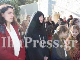 Το στεφάνι της Μονής κατέθεσαν δύο μικρά κοριτσάκια, με βήματα δειλά αλλά γεμάτα σεβασμό και παιδική ευλάβεια.