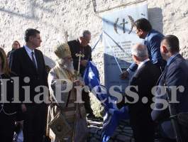 Κορυφαία στιγμή αποτέλεσαν τα αποκαλυπτήρια του νέου μνημείου, αφιερωμένου σε όσους ύψωσαν το ανάστημά τους στη μάχη της Σκαφιδιάς. Η σεμνή αλλά επιβλητική πλάκα αποκαλύφθηκε μπροστά στο εκκλησίασμα, που τίμησε τη στιγμή με απόλυτη σιωπή. Λίγα λεπτά πριν ο Μητροπολίτης Ηλείας και οι ιερείς είχαν τελέσει επιμνημόσυνη δέηση για την ανάπαυση των ηρώων της μάχης.