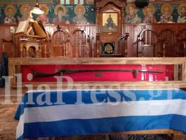 Με ιδιαίτερο σεβασμό, τελέστηκε η κατανυκτική Δοξολογία, στην οποία χοροστάτησε ο σεπτός ποιμενάρχης μας, Μητροπολίτης Ηλείας κ.κ. Αθανάσιος, πλαισιωμένος από σεβαστούς ιερείς της Μητροπόλεως. Στο κέντρο της μικρής εκκλησίας είχε τοποθετηθεί, με σεβασμό και συγκίνηση, το καριοφίλι του Κολοκοτρώνη, από τα κειμήλια της Μονής — ένα σιωπηλό τεκμήριο των ηρώων που πολέμησαν για πατρίδα και πίστη. Σαν να ξυπνούσαν για λίγο οι μνήμες δύο αιώνων.