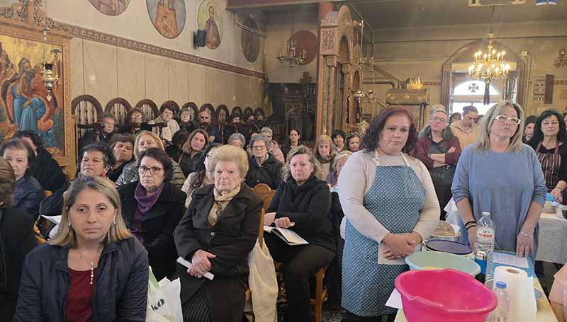 Κατά την διάρκεια αυτής της τόσο ενδιαφέρουσας και αξιόλογης εκδήλωσης, ο εφημέριος του Ιερόυ Ναού π. Νικόλαος Κατσηδήμας, απηύθυνε σύντομη ομιλία, αναφερόμενος στη βαθιά πνευματική σημασία του Προσφόρου, καθώς επίσης στους Ιερούς συμβολισμούς του αλλά και στη θέση που κατέχει στη ζωή της Αγίας μας Εκκλησίας. Τόνισε ότι το Πρόσφορο, δεν αποτελεί απλώς ένα Ψωμί, αλλά την ευλαβική προσφορά του πιστού προς τον Θεό, από την οποία θα ληφθεί ο Αμνός της Θείας Λειτουργίας, για να γίνει Σώμα Χριστού.