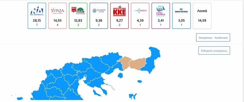 Από τη Νέα Δημοκρατία ο Γιώργος Αυτιάς έχει εξασφαλίσει την πρωτιά, καθώς η διαφορά του από τους συνυποψηφίους του διαρκώς αυξάνεται.