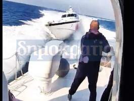 Η τουρκική ακταιωρός, όπως φαίνεται στις εικόνες που δημοσιεύονται στη «δημοκρατία» και αποτελούν στιγμιότυπα από βίντεο, που είναι στη διάθεση της εφημερίδας, σταμάτησε τους κύκλους και έκανε την παραπλανητική κίνηση προς τα πλάγια του ελληνικού σκάφους. Την τελευταία στιγμή ο Τούρκος καπετάνιος έστρεψε το τιμόνι του, μπήκε πίσω από το ελληνικό και άρχισε να πλησιάζει επικίνδυνα για να το εμβολίσει.