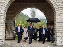 Τον κ. Αβραμόπουλο συνόδευαν η Πρέσβης της Ελλάδος στα Τίρανα κα Κωνσταντίνα Καμίτση και ο Γενικός Πρόξενος της Ελλάδος στο Αργυρόκαστρο κ. Δημήτρης Σαχαρίδης, της οποίας πόλεως του Αργυροκάστρου ο κ. Αβραμόπουλος είναι Επίτιμος Δημότης.