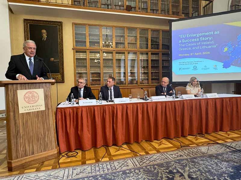 Προσκεκλημένος των Πρεσβειών της Ελλάδος, Ιρλανδίας και Λιθουανίας στην Τσεχική Δημοκρατία, ο π. Ευρωπαίος Επίτροπος, Βουλευτής Ηλείας κ. Δημήτρης Αβραμόπουλος μίλησε σήμερα σε διεθνή διάσκεψη που πραγματοποιήθηκε στην Πράγα, επ’ ευκαιρία της συμπληρώσεως 20 ετών από την ένταξη της Τσεχίας στην Ε.Ε., με θέμα «Η διεύρυνση της ΕΕ ως ιστορία επιτυχίας - Οι περιπτώσεις της Ιρλανδίας, Ελλάδας και Λιθουανίας».