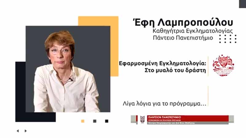 Με στιβαρό επιστημονικό λόγο και δεδομένα που «παγώνουν το αίμα», η καθηγήτρια Εγκληματολογίας στο Πάντειο, Έφη Λαμπροπούλου, εξηγεί τα χαρακτηριστικά και τα κίνητρα που οδηγούν έναν γονιό να σκοτώσει το παιδί του. Και μιλά για τα σεμινάρια εγκληματολογίας τού τμήματός της που παρακολούθησε η Ρούλα Πισπιρίγκου.