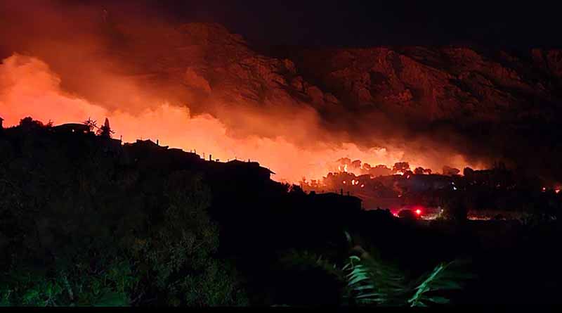 Η φωτιά εξακολουθεί να μαίνεται ανεξέλεγκτη, απειλώντας σπίτια και ξενοδοχειακές μονάδες.