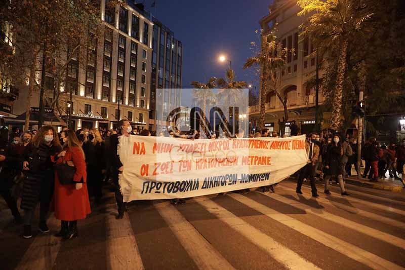 Πλήθος δικηγόρων ηγείται της πορείας που ξεκίνησε λίγο μετά τις 18:30 και κατευθύνεται προς την Ομόνοια.