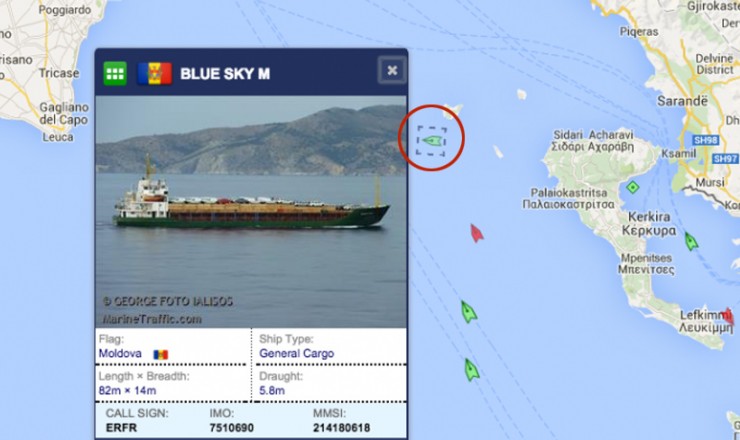 Πρόκειται για το πλοίο Blue Sky M και είναι φορτηγό με σημαία Μολδαβίας και κατευθυνόταν προς Κροατία.