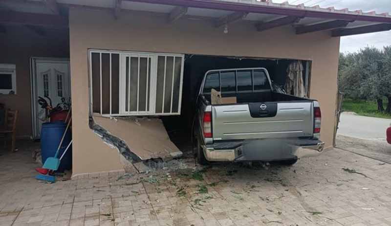 Ένα απίστευτο τροχαίο σημειώθηκε στη Μεσαρά Κρήτης, όταν αγροτικό αυτοκίνητο μπήκε στο σπίτι.