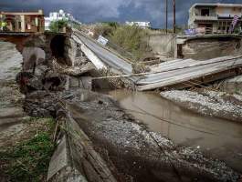 Στο σημείο έχουν κατέβει πολλά φερτά υλικά, ενώ σημειώνεται ότι στο Φαληράκι κόπηκε στα δύο και γέφυρα.