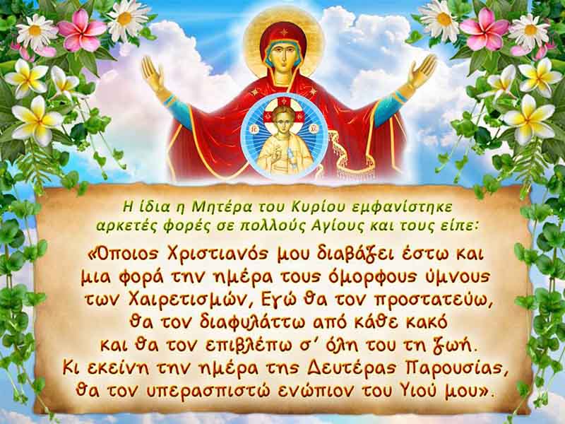 ΣΚΕΨΕΙΣ ΣΤΟΥΣ ΔΕΥΤΕΡΟΥΣ ΧΑΙΡΕΤΙΣΜΟΥΣ ΠΡΟΣ ΤΗΝ ΥΠΕΡΑΓΙΑΝ ΘΕΟΤΟΚΟΝ!!