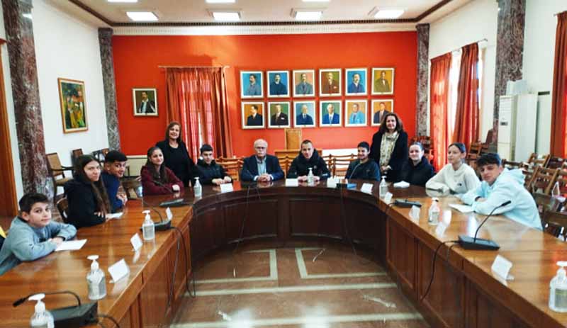 Ο κ. Δήμαρχος καλωσόρισε εγκάρδια τους μαθητές και τις μαθήτριες στο Δημαρχείο. Οι μαθητές/τριες είχαν την ευκαιρία να συνομιλήσουν μαζί του και να θέσουν τις ερωτήσεις τους και τους προβληματισμούς τους για θέματα που αφορούν στην πόλη μας.