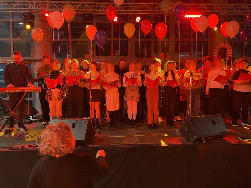Η χορωδία του 2ου Γυμνασίου Πύργου συμμετείχε στις εορταστικές εκδηλώσεις που έλαβαν χώρα στο πάρκο Ξυστρή για τη φωταγώγηση του Χριστουγεννιάτικου δέντρου της πόλης μας, την Κυριακή 10 Δεκεμβρίου 2023, μετά από πρόσκληση του Δ.Ο.Π. Πύργου