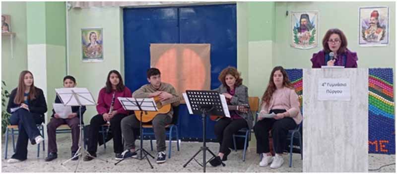 Την Παρασκευή 24 Μαρτίου 2023 οι εκπαιδευτικοί και οι μαθητές/μαθήτριες του 4ου Γυμνασίου Πύργου διοργάνωσαν εορταστική εκδήλωση στο αμφιθέατρο του σχολείου για να τιμήσουν την ημέρα της Εθνικής επετείου της 25ης Μαρτίου 1821.