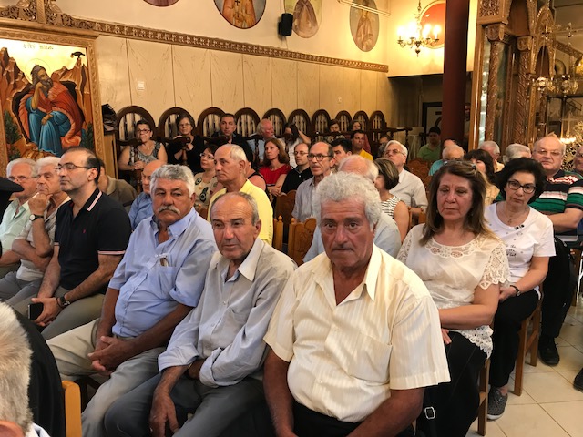 Στο τέλος της εκδήλωσης, ο Εφημέριος του Ιερού Ναού π. Νικόλαος Κατσηδήμας εκ μέρους του Εκκλησιαστικού Συμβουλίου, απένειμε τιμητική πλακέτα στον ακάματο Πρόεδρο του Συνδέσμου Πολεμιστών-Τραυματιών Κύπρου κ. Αθανάσιο Δασκόπουλο, ως αντίδωρο τιμής και ευγνωμοσύνης στους Ήρωες και Αγνοουμένους της Κυπριακής Τραγωδίας, κατά την επέλαση του Αττίλα τον Ιούλιο του 1974.