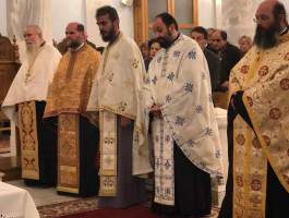 Οι καλλικέλαδοι χοροί των Ιεροψαλτών υπό την διεύθυνση των Μουσικολογιοτάτων Ιεροψαλτών του Ναού κ. Αγγέλου Κούνα και κ. Γεωργίου Παπαγεωργίου, πλαισιωμένοι αμφότεροι από μαθητές της Σχολής Βυζαντινής Μουσικής της Ιεράς Μητροπόλεώς μας, καθώς επίσης και από φιλόμουσους εργάτες του ιερού αναλογίου, απέδωσαν θαυμάσια και μελίρρυτα τους ύμνους, ως καλοί και γνήσιοι θεράποντες της πατρώας Βυζαντινής Μουσικής, συμβάλλοντας έτσι καθοριστικά στην πνευματική ανάταση του πολυπληθούς Εκκλησιάσματος, που προσήλθε ομοθυμαδόν να τιμήσει τον Άγιο Νικόλαο, ο οποίος υπήρξε ο εκφραστής του Ελληνορθόδοξου ιδεώδους, ενώ είναι ο γαληνεμένος όρμος και το λιμάνι της σωτηρίας κάθε ανθρώπου. Ως Ορθόδοξοι νεοέλληνες έχουμε χρέος να τιμάμε και να μιμούμαστε υπέροχες προσωπικότητες του ενδόξου παρελθόντος μας. σαν αυτή του Αγίου Νικολάου.