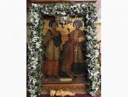 Με την δέουσα Εκκλησιαστική ιεροπρέπεια και κατάνυξη καθώς επίσης τηρουμένων των υγειονομικών μέτρων κατά της πανδημίας του Covid-19, εορτάστηκαν στον Ιερό Ναό Αγίου Σπυρίδωνος Πύργου, οι ανιδιοτελείς θεραπευτές με την ανόθευτη Ορθόδοξη Χριστιανική πίστη, Ανάργυροι Κοσμάς και Δαμιανός οι εκ Ρώμης καταγόμενοι.
