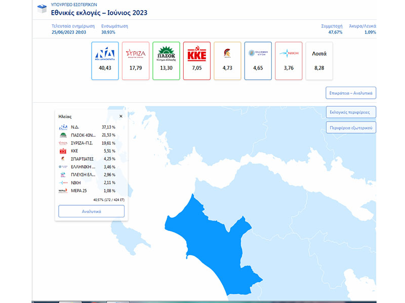 Ηλεία Συγκεντρωτικά αποτελέσματα στο 48,35%