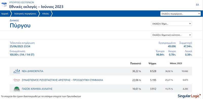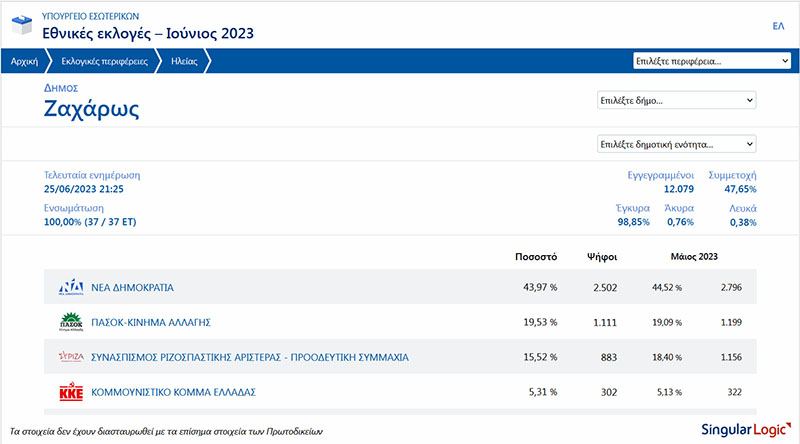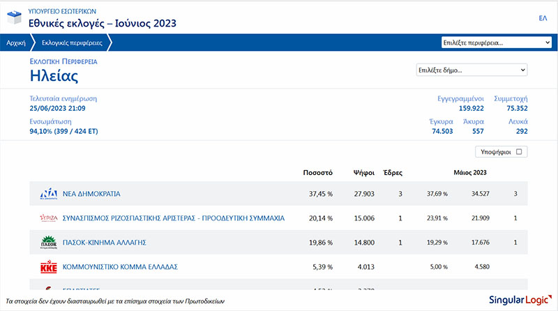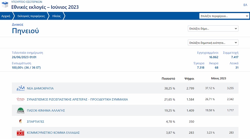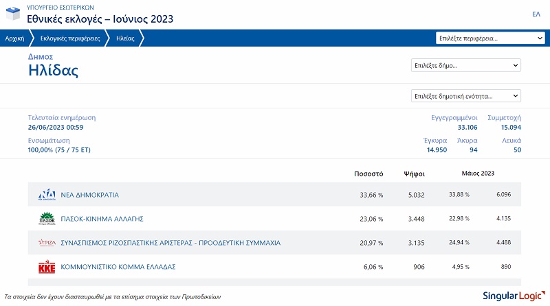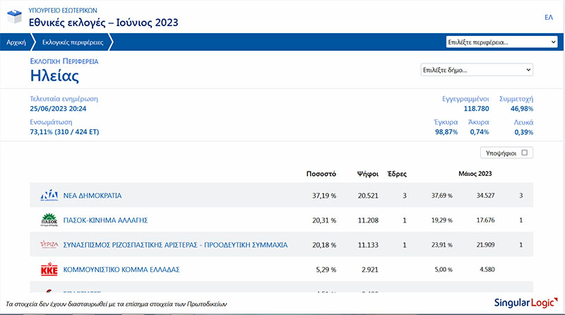Ηλεία Συγκεντρωτικά αποτελέσματα στο 73,11%