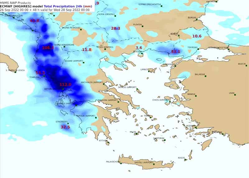 Σύμφωνα με το έκτακτο δελτίο επιδείνωσης του καιρού που εξέδωσε η ΕΜΥ από σήμερα 23 Σεπτεμβρίου, αναμένονται ισχυρές βροχές και καταιγίδες που θα συνοδεύονται κατά τόπους από χαλαζοπτώσεις και πολύ ισχυρούς ανέμους.