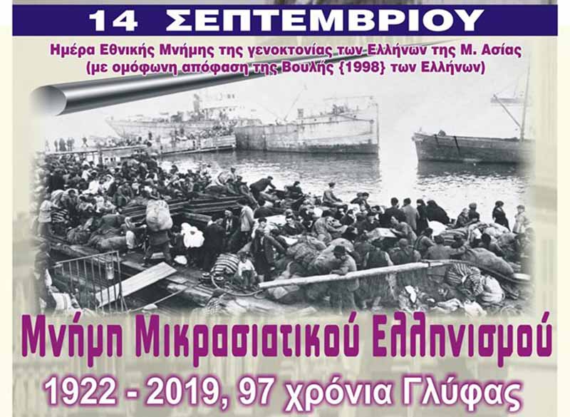 H 14 Σεπτεμβρίου έχει καθιερωθεί Ημέρα μνήμης της γενοκτονίας των Ελλήνων της Μικράς Ασίας, με ομόφωνη απόφαση της Βουλής των Ελλήνων.