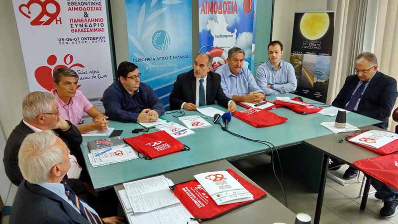 Η ενίσχυση της εθελοντικής αιμοδοσίας και η εξασφάλιση της επάρκειας αίματος για να συνεχίσει η Περιφέρεια Δυτικής Ελλάδας να αποτελεί πρότυπο εθελοντικής αιμοδοσίας σε όλες τις Περιφερειακές Ενότητες είναι το όραμα που περιέγραψε ο Περιφερειάρχης Δυτικής Ελλάδας Απόστολος Κατσιφάρας, στη διάρκεια συνέντευξης Τύπου που παραχωρήθηκε τη Δευτέρα 1 Οκτωβρίου 2018, με αφορμή την κορυφαία συνάντηση των εκπροσώπων του κινήματος της Εθελοντικής Αιμοδοσίας που θα γίνει στην Πάτρα, στις 5, 6 και 7 Οκτωβρίου 2018.