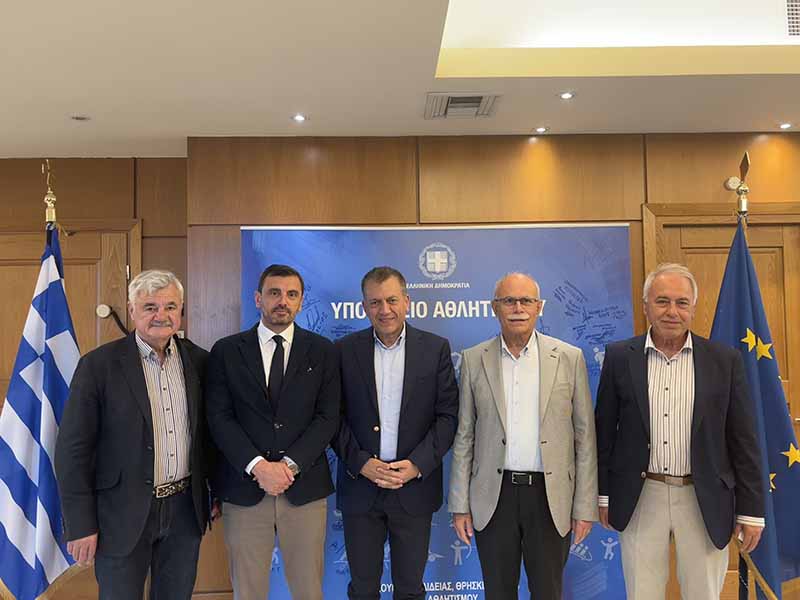 Τον Αναπληρωτή Υπουργό Παιδείας και Θρησκευμάτων, αρμοδίου για θέματα Αθλητισμού, Γιάννη Βρούτση, επισκέφθηκε χθες ο τ. Υφυπουργός Προστασίας του Πολίτη, Ανδρέας Νικολακόπουλος, με τον Δήμαρχο Πύργου, Στάθη Καννή, τον Αντιδήμαρχο Τεχνικών Υπηρεσιών, Βασίλη Παναγόπουλο και τον Αντιδήμαρχο επί Αθλητικών Θεμάτων, Νώντα Κυριαζή.