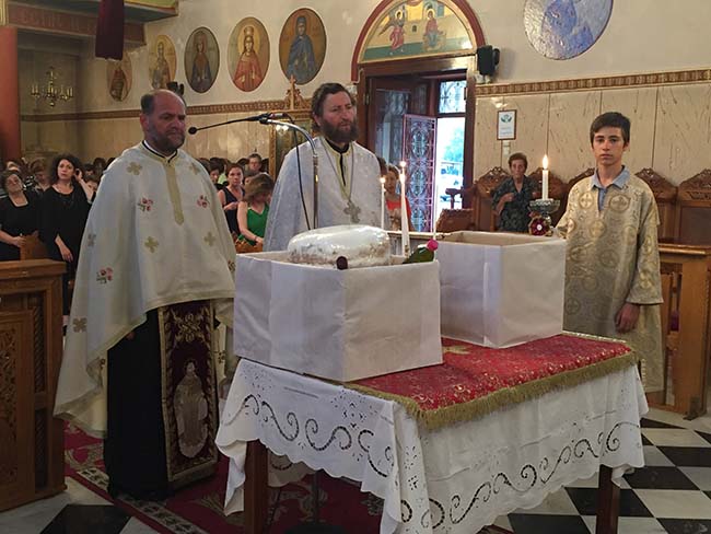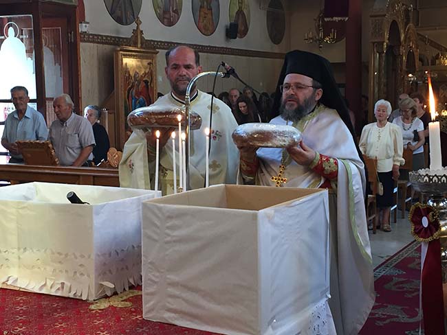 Κατά την κυρία ημέρα της εορτής τελέσθηκε η Πανηγυρική Θεία Λειτουργία μετ’ αρτοκλασιών και Θείου Κηρύγματος, ιερουργούντος του Πανοσιολογιοτάτου Αρχιμανδρίτου π. Δαμασκηνού Πετράκου, Ιεροκήρυκος της Ιεράς Μητροπόλεώς μας, βοηθουμένου υπό του οικείου εφημερίου.
