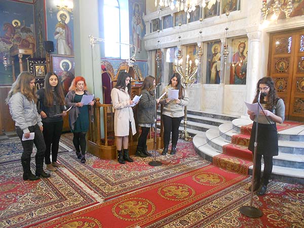Με τον συντονισμό των φιλολόγων καθηγητών κ. Χαράς Κοτσώνη και Γεωργίου Κουρκούτα οι μαθήτριες παρουσίασαν στον χώρο του Ναού την ζωή και το έργο των Τριών ιεραρχών, αλλά και ένα πρωτότυπο θεατρικό έργο για τις Παιδαγωγικές Ιδέες και τις θέσεις για την