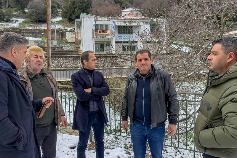Ένα πανέμορφο σκηνικό δημιούργησε η χιονόπτωση των τελευταίων ωρών στα ορεινά χωριά του Δήμου Αρχαίας Ολυμπίας, ντύνοντάς τα στα λευκά και προσφέροντας μοναδικές εικόνες.Την ίδια στιγμή, από νωρίς το πρωί της Δευτέρας, 12 Ιανουαρίου, ο Δήμαρχος Αρχαίας Ολυμπίας, Αριστείδης Παναγιωτόπουλος, ο Αντιδήμαρχος Πολιτικής Προστασίας και Τεχνικών Υπηρεσιών, Γιώργος Λινάρδοςκαι ο Εντεταλμένος Δημοτικός Σύμβουλος Πολιτικής Προστασίας και Τεχνικών Υπηρεσιών, Πέτρος Γκούβαςπραγματοποίησαν επιτόπιες επισκέψεις σε ορεινές κοινότητες του Δήμου, προκειμένου να διαπιστώσουν την κατάσταση στο οδικό δίκτυο και να συντονίσουν τις ενέργειες για την αντιμετώπιση τυχόν προβλημάτων που θα μπορούσαν να προκύψουν από τα έντονα καιρικά φαινόμενα.