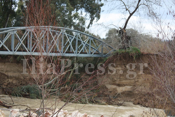 Κινδυνεύει να καταρρεύσει γέφυρα του ΟΣΕ στη Σαλμώνη Πύργου από την κακοκαιρία