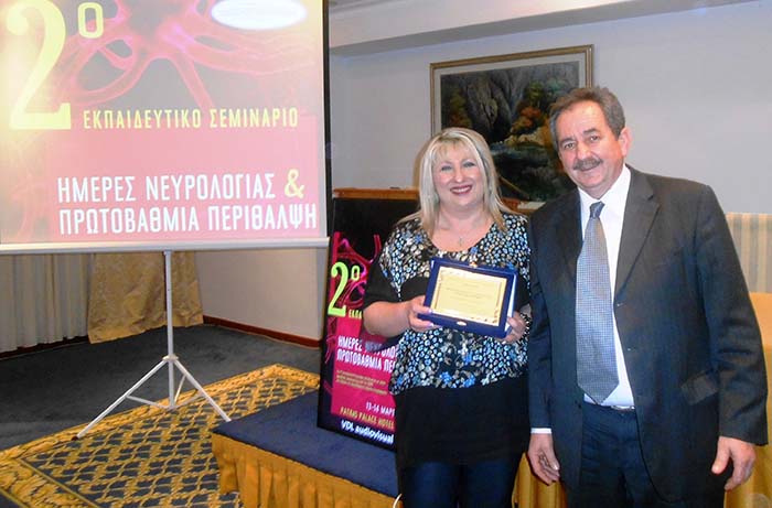 Στην εναρκτήρια τελετή χαιρέτησε εκ μέρους της ΕΕΑΣΚΠ η πρόεδρος κα Μαργαρίτα Καραγιώργου όπου έτυχε της ευχάριστης έκπληξης της τιμητικής βράβευσης του Σωματείου για την προσφορά του, από το Νευρολογικό Τμήμα του Γ. Ν. Π. "Ο Άγιος Ανδρέας" το οποίο παρέδωσε ο Διευθυντής του Τμήματος, ο Νευρολόγος κ. Νίκος Μακρής.