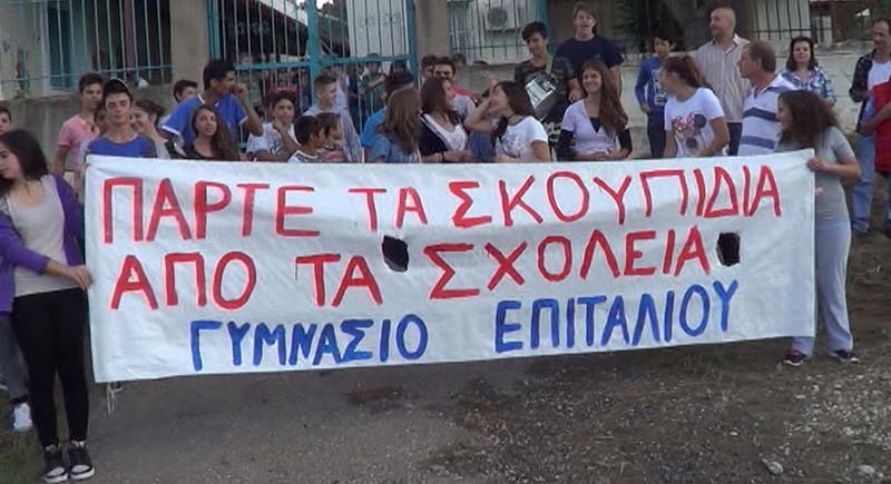 Με αναφορά στο όνομα του Δημάρχου Πύργου και με συνθήματα όπως: "ΓΑΒΡΙΛΗ ΛΙΑΤΣΗ ΣΟΥ ΦΕΡΑΜΕ ΜΑΓΙΟ / ΓΙΑ ΝΑ ΚΑΝΕΙΣ ΜΠΑΝΙΟ ΣΤΟ ΣΚΟΥΠΙΔΑΡΙΟ", και κρατώντας πανό με συνθήματα, οι μαθητές του Γυμνασίου Επιταλίου διαδήλωσαν σήμερα, απαιτόντας εδώ και τώρα να απομακρυνθεί ο σκουπιδότοπος έξω από το σχολείο τους.