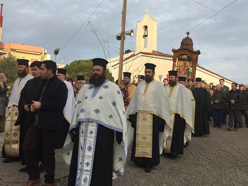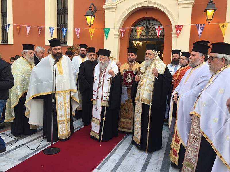 Την Ιερά Εικόνα έξωθεν του Ιερού Ναού της Αγίας Κυριακής, υποδέχθηκε ο Σεβασμιώτατος Μητροπολίτης μας κ.κ. Γερμανός, οποίος μετά την δέηση εισόδευσε και ενθρόνισε αυτήν εις τον Ιερό Ναό, όπου και τελέσθηκε προεόρτιος Αρχιερατικός Πανηγυρικός Εσπερινός μετ' αρτοκλασιών υπό του ιδίου, ενώ τον Θείον Λόγον εκήρυξε ο Θεοφιλέστατος Επίσκοπος Ωλένης κ.κ. Αθανάσιος.