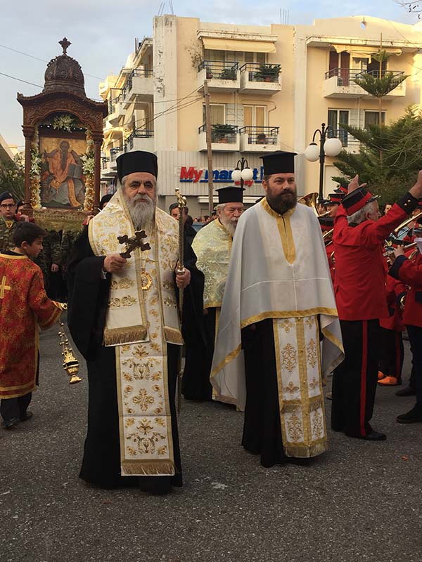 Η μεταφορά της Ιερής Εικόνας από το Ιστορικό του Παρεκκλήσιο, έγινε υπό του Θεοφιλεστάτου Επισκόπου Ωλένης κ.κ. Αθανασίου, πλαισιουμένου υπό του Ιερού Κλήρου της Πόλεως και της ευρύτερης περιοχής του Πύργου, κάτω υπό τους ήχους της Φιλαρμονικής Πύργου «ΑΠΟΛΛΩΝ», συνοδευόμενη από τιμητικό Στρατιωτικό άγημα της ΣΕΤΤΗΛ ενώ ακολούθησε πλήθος ευλαβών Χριστιανών της Πόλης του Πύργου, οι οποίοι με ιδιαίτερη προσήλωση, ευλάβεια και σεβασμό τιμούν τον Άγιο και προστάτη τους, Ιερομάρτυρα