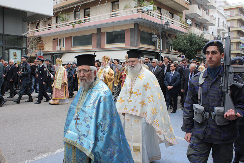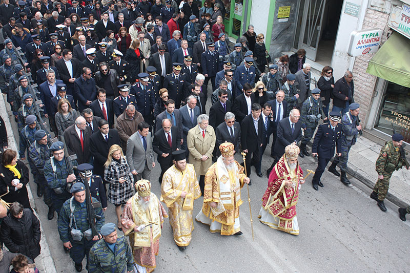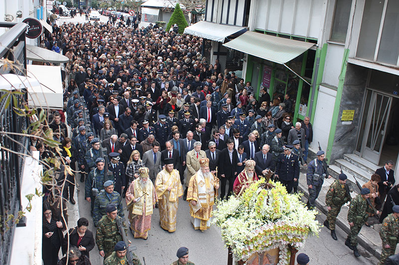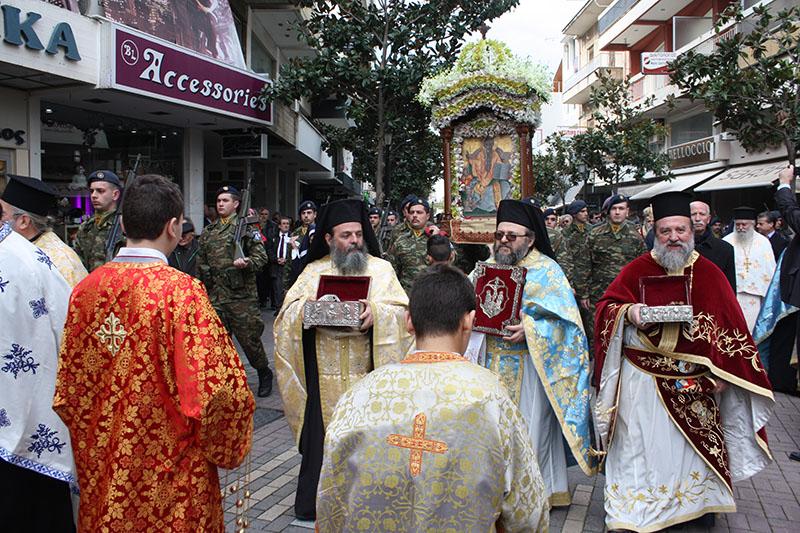 Στην συνέχεια παρουσία του εκπροσώπου της Κυβερνήσεως Υπουργού Δικαιοσύνης κ. Σταύρου Κοντονή, του Υφυπουργού Παιδείας κ. Δημήτρη Μπαξεβανάκη, του Προέδρου της Ένωσης Κεντρώων κ. Βασίλη Λεβέντη, του Βουλευτών κ. Κώστα Τζαβάρα, κ. Γιάννη Κουτσούκου, κ. Έφης Σαλτάρη, του πρώην Βουλευτή κ. Ανδρέα Μαρίνου, της πρώην Βουλευτού Διονυσίας Αυγερινοπούλου, του Πολιτευτή κ. Θεόδωρου Βλαγκούλη, του Περιφερειάρχη Δυτικής Ελλάδος κ. Απόστολου Κατσιφάρα και του Δημάρχου Πύργου κ. Γαβρίλη Λιατσή, καθώς επίσης και των λοιπών Πολιτικών και Στρατιωτικών και Δικαστικών αρχών, ακολούθησε η λιτάνευση της Σεπτής Εικόνας του εορταζομένου Αγίου και αποτμημάτων Ιερών Λειψάνων, στους κεντρικούς δρόμους του Πύργου.