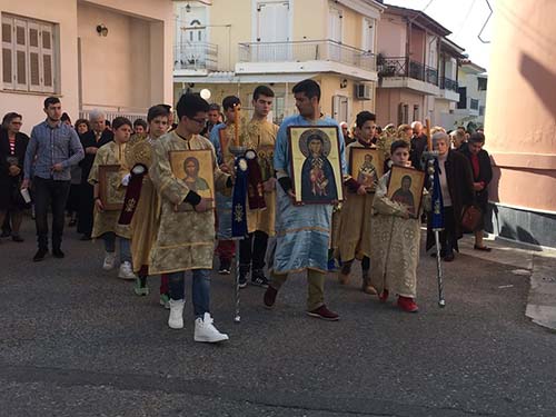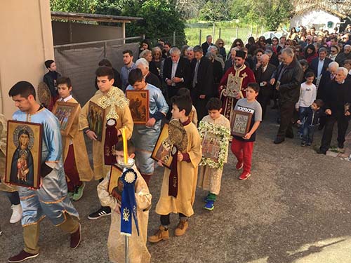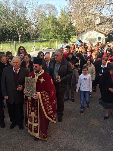 Στο τέλος της Αναστάσιμης Θείας Λειτουργίας, σύμφωνα με το τυπικό της Αγίας μας Εκκλησίας και την αρμόζουσα Εκκλησιαστική τάξη και ευπρέπεια, πραγματοποιήθηκε η λιτάνευση των Ιερών Εικόνων πέριξ του Ιερού Ναού και αναγνώσθηκε το απόσπασμα από το Συνοδικό της Ορθοδοξίας.
