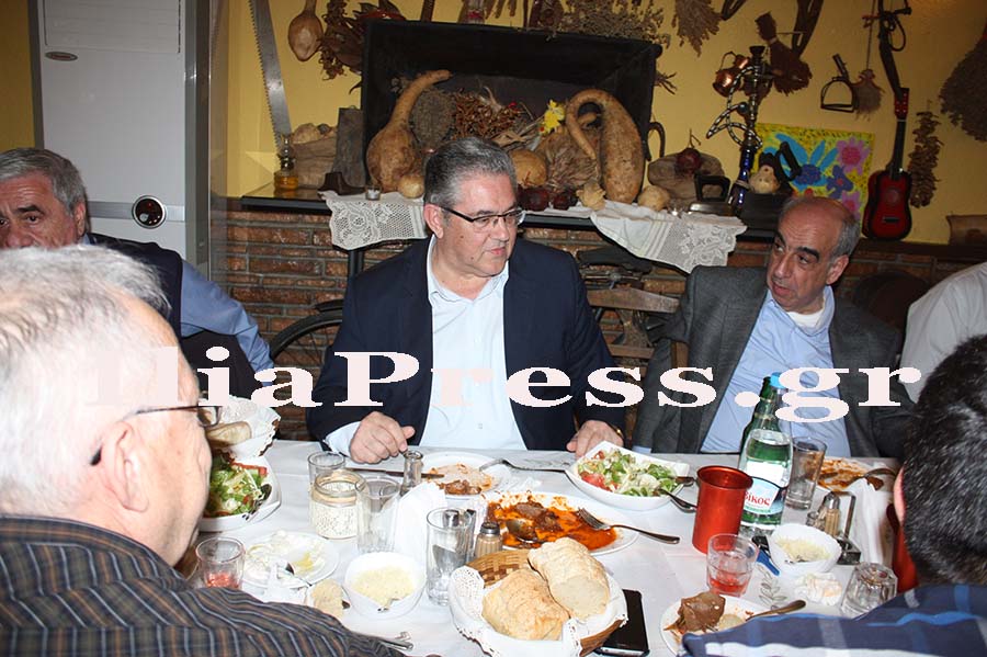 Το παραδοσιακό και φιλόξενο περιβάλλον του γνωστού στον Πύργο φαγοποτείου "Τα τεντζερέδια του Ζαχαρία" επέλεξαν ο Γ.Γ. του ΚΚΕ Δημήτριος Κουτσούμπας και οι συνεργάτες του να γευματίσουν τη Δευτέρα το μεσημέρι μετά την εκδήλωση εγκαινίων της μόνιμης έκθεσης Νίκου Μπελογιάννη στην Αμαλιάδα.
