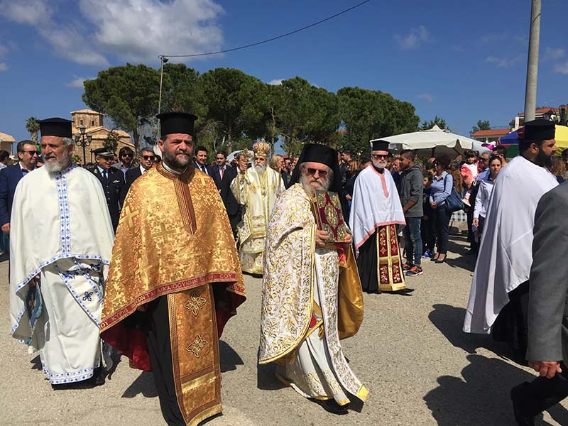Στον περικαλλή αυτό αλλά και συνάμα Ιστορικό Ιερό Ναό, ο οποίος είναι μνημείο του 12ου αιώνος και ανακαινίστηκε τα τελευταία χρόνια από το Υπουργείο Πολιτισμού, την Αναστάσιμη Πανηγυρική Θεία Λειτουργία, πλαισιούμενος υπό του Ιερατείου της πόλης. τέλεσε ο Σεβασμιώτατος Μητροπολίτης μας κ.κ. Γερμανός, ο οποίος κήρυξε και τον Θείο Λόγο.