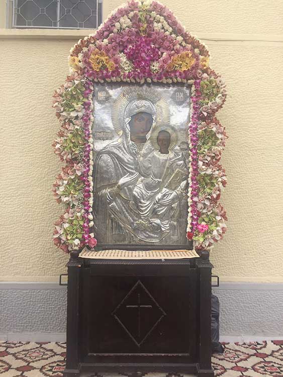 «Ἀείζωα προχέουσα νάματα ἐκ Πηγῆς Ἁγνή, μή διαλίπῃς Παρθένε πρεσβεύουσα πάντοτε ὑπέρ τῶν δούλων σου»