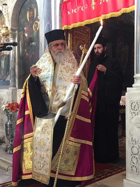 Την παραμονή της εορτής Πέμπτη της Διακαινησίμου στον Αναστάσιμο Πανηγυρικό Εσπερινό μετ΄ αρτοκλασιών και Θείου Κηρύγματος, χοροστάτησε ο Θεοφιλέστατος Επίσκοπος Ωλένης κ.κ. Αθανάσιος, ο οποίος και πλαισιωνόταν από Ιερείς της πόλεως καθώς επίσης και τους εφημερίους του ως άνω Ιερού Ναού. Την κυριώνυμο ημέρα της εορτής, Παρασκευή της Διακαινησίμου, κατά την Αναστάσιμη Πανηγυρική Θεία Λειτουργία μετ’ αρτοκλασιών προεξείχε ο Σεβασμιώτατος Μητροπολίτης μας κ.κ. Γερμανός, ο οποίος κήρυξε τον Θείο Λόγο με τρόπο γλαφυρό, αναφερόμενος σε συναφή θέματα σχετικά με τα επίκαιρα γεγονότα της Αναστάσεως του Χριστού, του Πάσχα και της εορτής της Ζωοδόχου Πηγής, ενώ προέβη και στην χειροθεσία τριών νέων Αναγνωστών εκ της ενορίας.