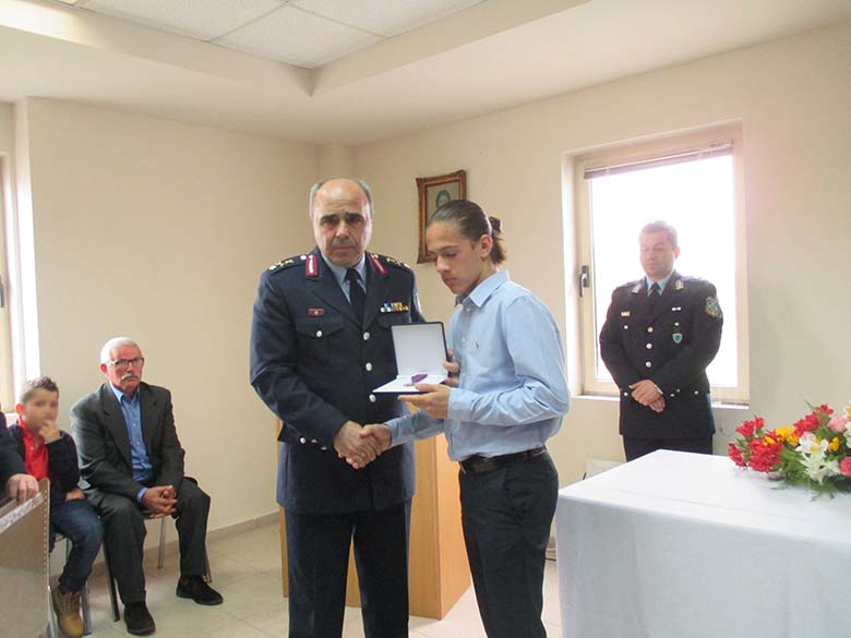 Το Αστυνομικό Μετάλλιο και το αντίστοιχο Δίπλωμα απένειμε στους υιούς του τιμώμενου αστυνομικού, Παρασκευά και Βασίλειο, ο Γενικός Περιφερειακός Αστυνομικός Διευθυντής Δυτικής Ελλάδας, Ταξίαρχος Κωνσταντίνος ΣΤΕΦΑΝΟΠΟΥΛΟΣ.