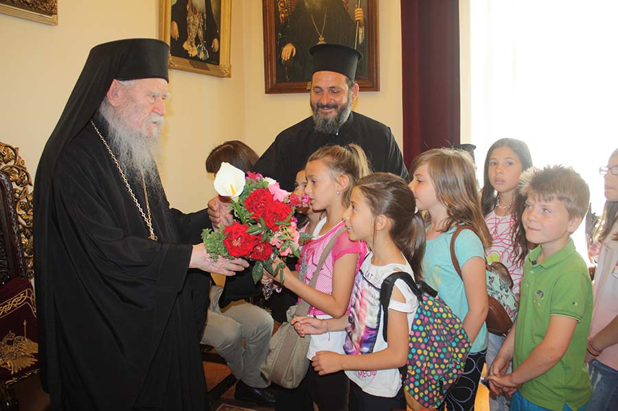 Στην συνέχεια μετέβη στο Μητροπολιτικό Μέγαρο, όπου μέχρι αργά το μεσημέρι εδέχθη τις θερμές ευχές των τοπικών Πολιτικών και Στρατιωτικών αρχών, του Ιερού Κλήρου, των Μοναστικών αδελφοτήτων, των εκπροσώπων Κοινωνικών φορέων και Συλλόγων, καθώς επίσης και του Χριστεπωνύμου πληρώματος της Ιεράς Μητροπόλεώς μας.