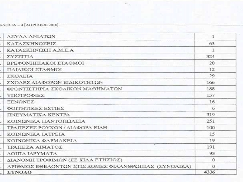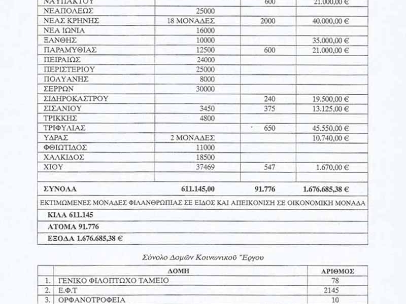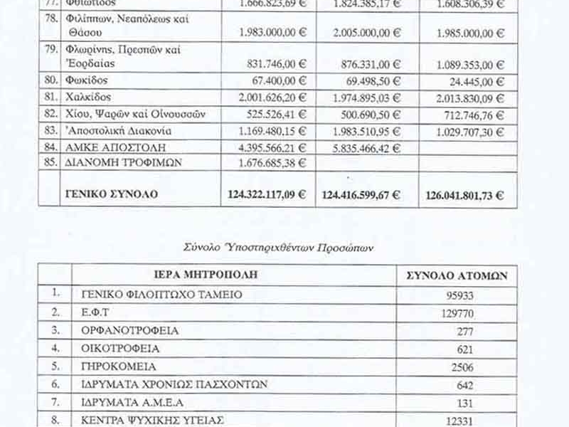 Χαρακτηριστικοί είναι οι πίνακες που ακολουθούν που εξέδωσε η Συνοδική Επιτροπή Κοινωνικής Πρόνοιας και Ευποιίας.
