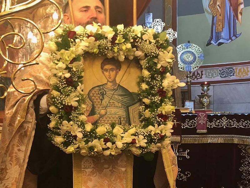 η ιερή μνήμη του «Ήρωα του Ρωμαϊκού Στρατού και Ήρωα της Χριστιανικής Πίστεώς μας», μεγαλομάρτυρος Αγίου Δημητρίου του Μυροβλήτου.