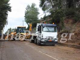 Στον δρόμο Μακρίσια - Κρέστενα, η συνεχής νεροποντή παρέσυρε βράχους και χώματα από το βουνό. Συνεργεία του Δήμου χθες το πρωί καθάριζαν και άνοιγαν τον δρόμο.