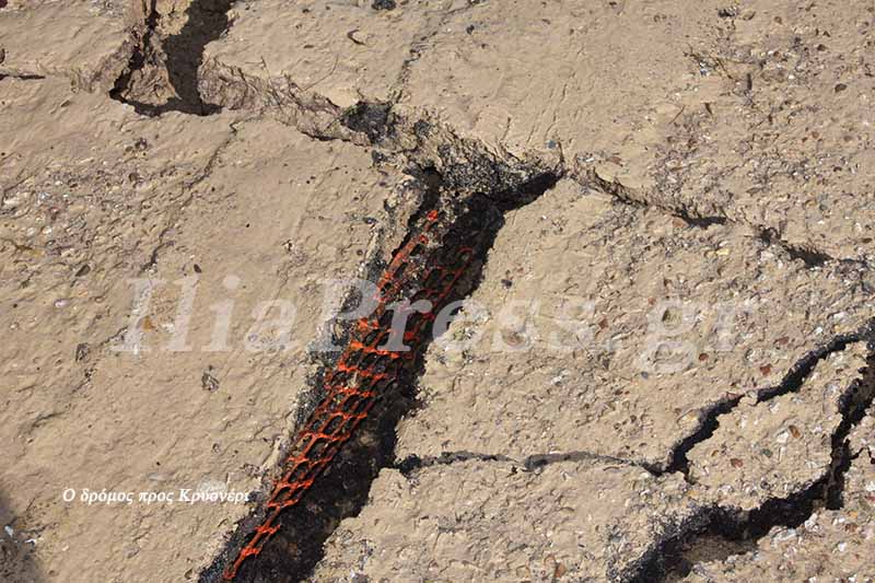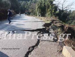 Το Κρυονέρι αποκλείστηκε. Ο ασφαλτοστρωμένος δρόμος διαλύθηκε, έσπασε σε πολλά κομμάτια.