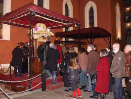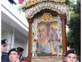 Εν συνέχεια παρουσία των εκπροσώπων του Ελληνικού Κοινοβουλίου Βουλευτών κ. Μάκη Μπαλαούρα κ. Δημήτρη Μπαξεβανάκη, κ. Κώστα Τζαβάρα, κ. Γιάννη Κουτσούκου, των Πολιτευτών κ. Θεόδωρου Βλαγκούλη, κ. Μιχάλη Κατρίνη, κ. Γιώργου Κοντογιάννη, κ. Διονυσίας Αυγερινοπούλου, του Περιφερειάρχη Δυτικής Ελλάδος κ. Απόστολου Κατσιφάρα, του Δημάρχου Πύργου κ. Γαβρίλη Λιατσή, καθώς επίσης και των λοιπών Πολιτικών και Στρατιωτικών και Δικαστικών αρχών, ακολούθησε η λιτάνευση της Σεπτής Εικόνας του εορταζομένου Αγίου και αποτμημάτων Ιερών Λειψάνων, στους κεντρικούς δρόμους του Πύργου.